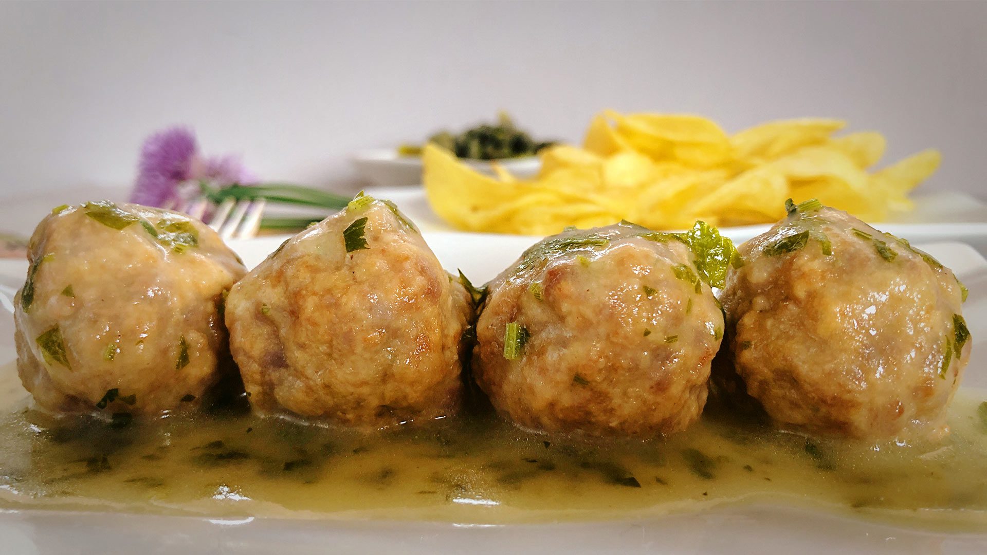 Poner las albóndigas en una cazuela y regar con la salsa verde.