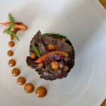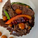 Puedes acompañarlas de un zócalo de boniato y decorar con calabacín.