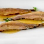Limpiar los chicharros de escamas. Abrirlos por la mitad, limpiar muy bien el interior retirando las espinas o vísceras que puedan contener. Perfilar los contornos. Reservar refrigerados.