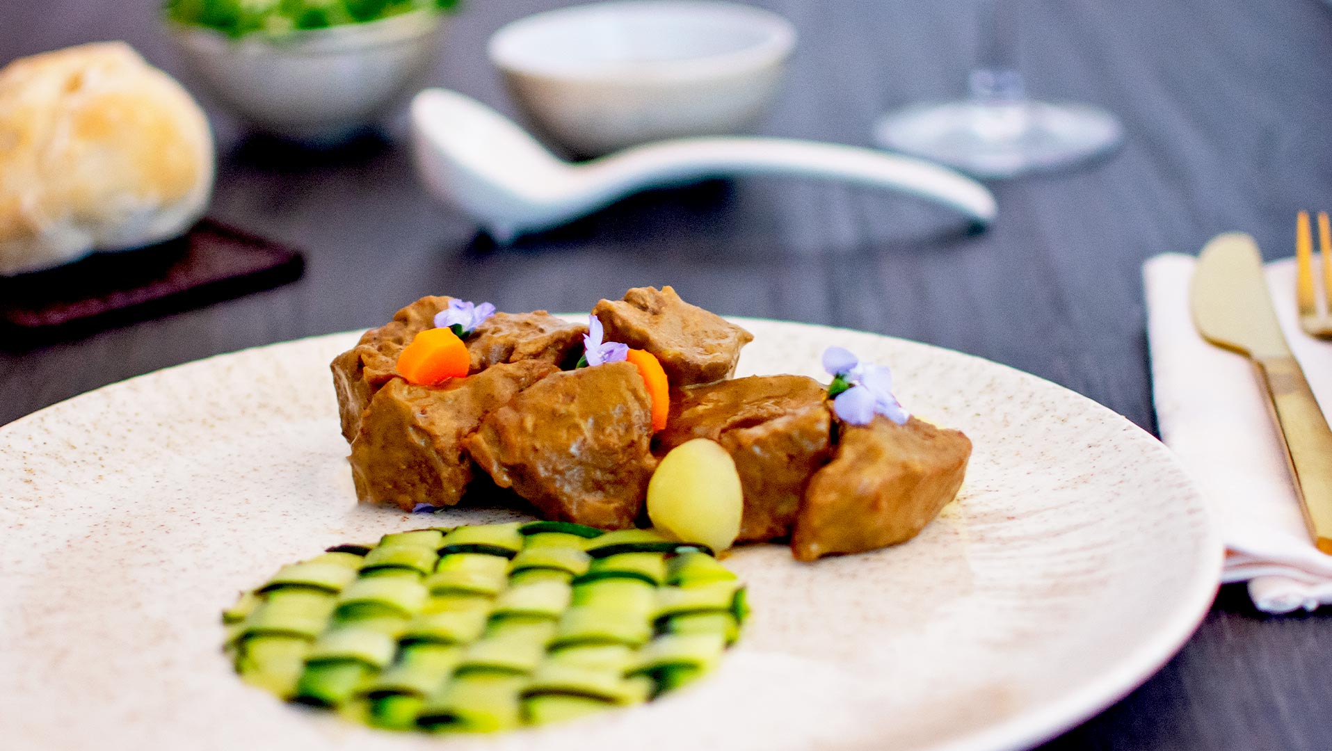 Volver a introducir los trozos de ternera en la salsa, rectificar de sal si fuera necesario, dar un pequeño hervor de dos o tres minutos.